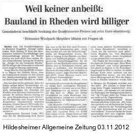 Hildesheimer Allgemeine Zeitung 12.11.2012