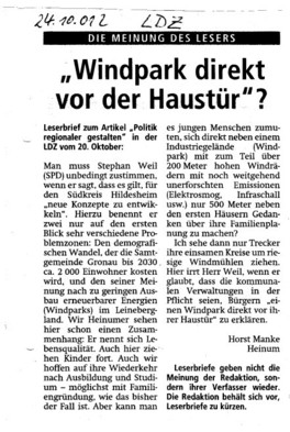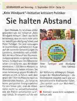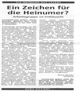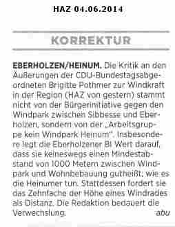 Vielen Dank Herr Tarek Abu Ajamieh für die schnelle Berichtigung des Artikels "Windkraft BI wettert gegen Pothmers Thesen" .