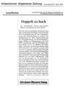 Hildesheimer Allgemeine Zeitung 20.04.2013