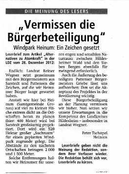 Hildesheimer Allgemeine Zeitung 30.11.2012